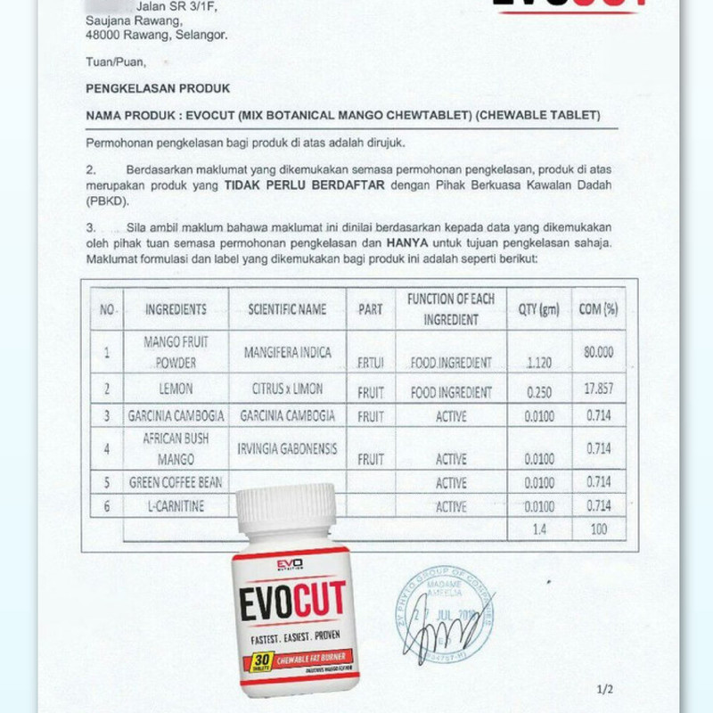 | Tempoh penggunaan 1 Botol | 20 hari (1 Tablet pagi & 1 Tablet malam) |